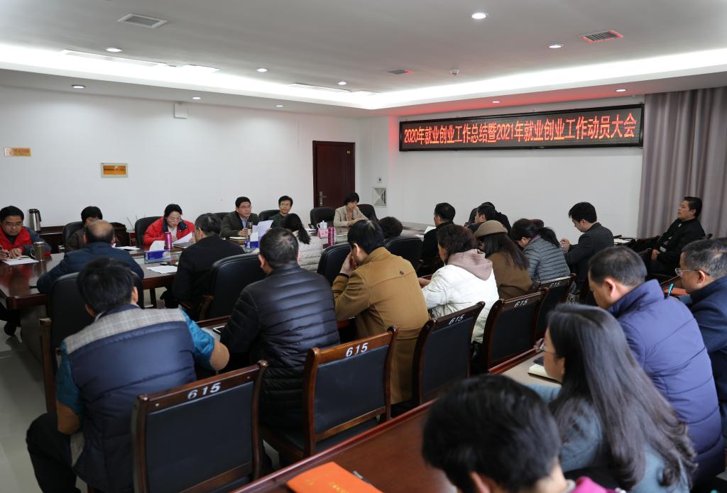 本站讯(实习就业处 柳火根)为进一步推进学校就业创业工作,提升就业创业工作质量。1月21日下午,万象城官网在科技综合楼615会议室召开2020年就业创业工作总结暨2021就业创业工作动员大会,校党委书记任军、校长杨云山、副校长易滨秀出席了会议,各相关部门主要负责人、各二级学院院长和党总支书记以及实习就业处、创新创业学院相关人员参加了此次会议,会议由易滨秀主持。