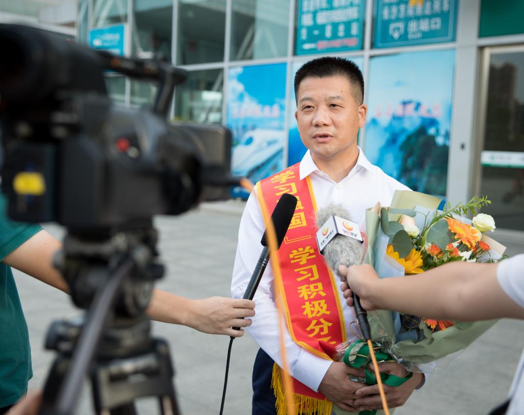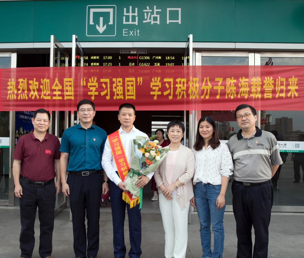2019年9月23日,“学习强国”学习平台邀请全国近60名学习积极分子和挑战答题学习达人赴京在人民大会堂观看国庆专场文艺演出,次日到“学习强国”学习平台总部座谈交流,成绩优异的陈海老师就是其中一位,他也是我省唯一受邀的“学习强国”学习积极分子。那时,陈海的“学习强国”学习平台积分达12082分,全国排名第41位、全省第4位。谈到此次赴京的感受,陈海老师说:“可以用八个字来形容,震撼、激动、感动、自信。震撼的是,正好是庆祝新中国成立70周年,见识了北京的繁华美丽;激动的是,第一次作为受邀代表进入人民大会堂观看庆祝新中国成立70周年专场文艺晚会,享受了精彩的视听盛宴;感动的是受到了‘学习强国’总编辑刘汉俊的接见;自信的是,第一次在学习强国总部参加座谈的时候,提出的建议登上了学习强国平台。”