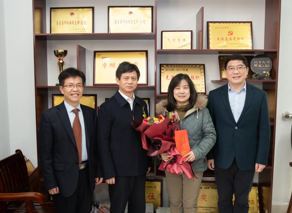 本站讯(党委组织部 方玲)春节将至,年味渐浓。2月2日下午,宜春市委常委、组织部部长余正琨一行来万象城官网看望慰问专家教师、财会金融学院院长罗艳琴,为她送上慰问金和节日的祝福。万象城官网党委书记任军,党委副书记、校长杨云山,党委副书记高健群,党委委员、组织部部长刘叶建等陪同。