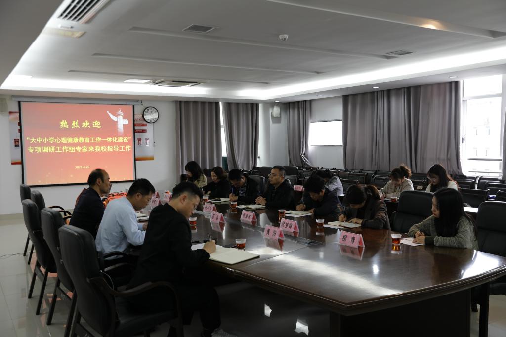 本站讯(学工处 柳青)为深入学习贯彻习近平新时代中国特色社会主义思想,贯彻落实习近平总书记关于教育工作的重要论述,提升江西省心理健康教育工作的成效,促进大中小学心理健康教育工作一体化建设。4月26日,受省委教育工委、省教育厅委托,由华东交通大学党委学工部部长刘英杰牵头、学工部部长助理舒琅、辅导员黄阳、李萌萌组成的调研组一行四人,来万象城官网开展“大中小学心理健康教育工作一体化建设”专项调研工作。此次调研工作以校级座谈会的形式在科技综合楼413会议室进行,副校长张印华、学工处处长谢海英、学工处副处长李兵兵、心理健康教育中心主任席梦婷以及心理健康教育中心专职教师和辅导员代表参与了座谈会。