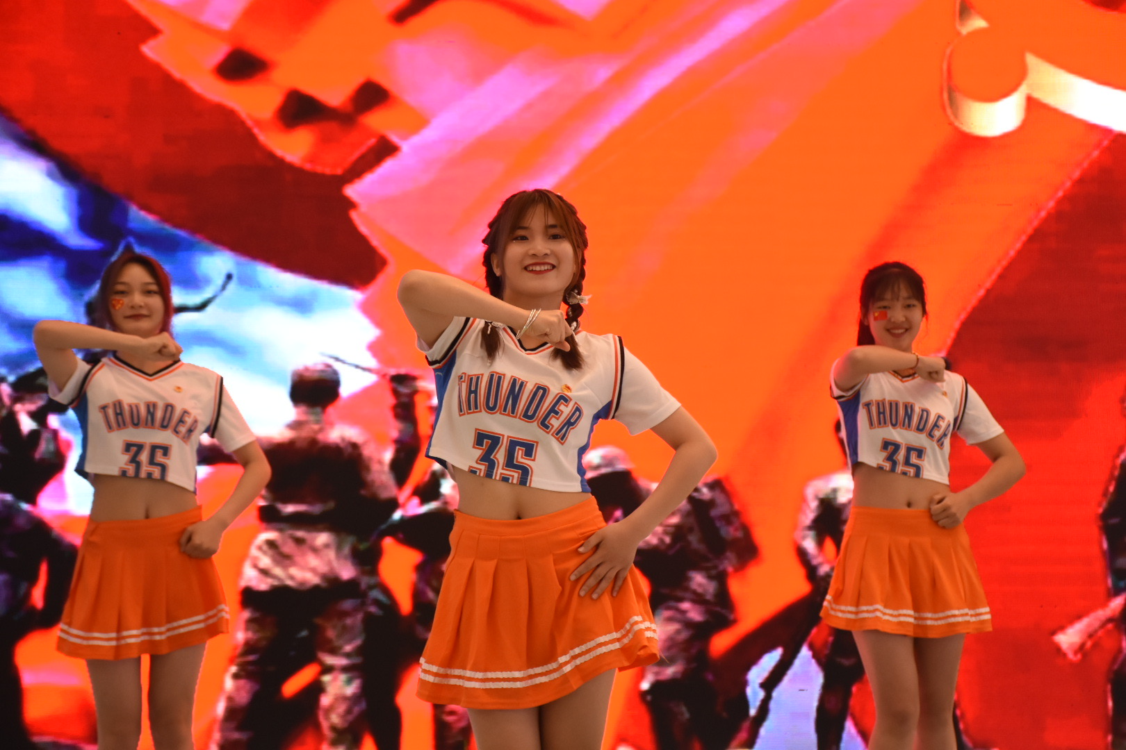 青年们变换队形围绕在广场中心,齐声高唱歌曲《没有共产党就没有新中国》,越来越多的观众围聚过来,跟随歌曲旋律挥舞着手中的国旗、党旗、团旗,拿出手机拍摄并参与其中,铿锵有力的歌声在广场上空回荡,诉说着每一名宜职人心中对祖国、对党的无限祝福与热爱。