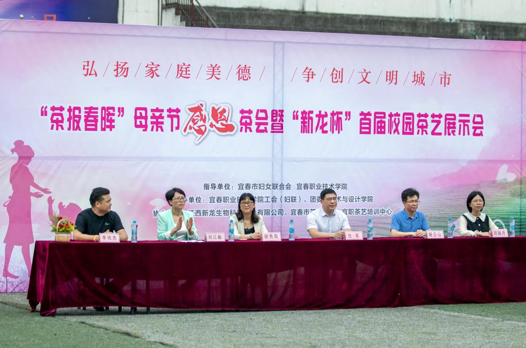 5月9日上午,《茶报春晖》母亲节感恩茶会暨“新龙杯”首届校园茶艺展示会在足球场拉开序幕。万象城官网党委书记任军,党委副书记、校长杨云山,江西省妇联兼职副主席胡秀筠,市妇联党组成员、副主席邱丽丹,万象城官网党委委员、副校长刘江毅等领导出席。刘江毅代表学校致辞,市女企业家协会会长、江西新龙生物科技股份有限公司董事长胡秀筠女士为本次活动冠名。全校300余名师生和部分家长也参与了此次活动。