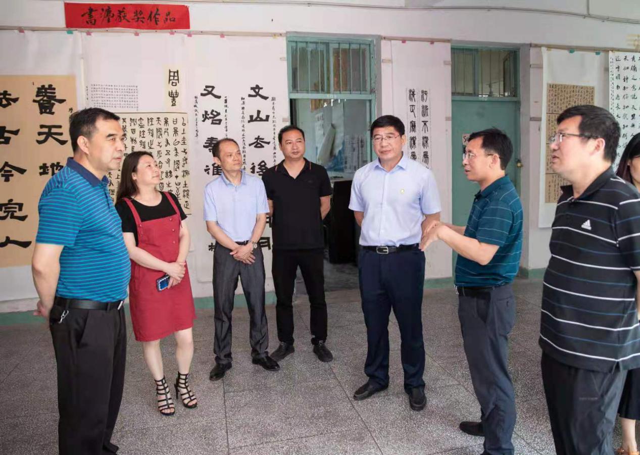 校党委书记任军等领导认真听取作品指导老师讲解,了解不同形式、不同风格的作品所体现出的思想内涵,围绕作品内容进行探讨交流。对艺术与设计学院作品给予了高度赞扬。