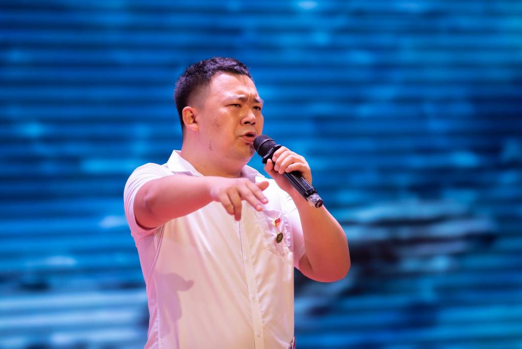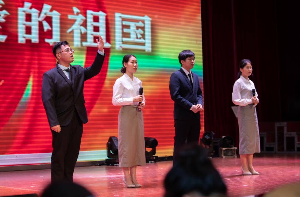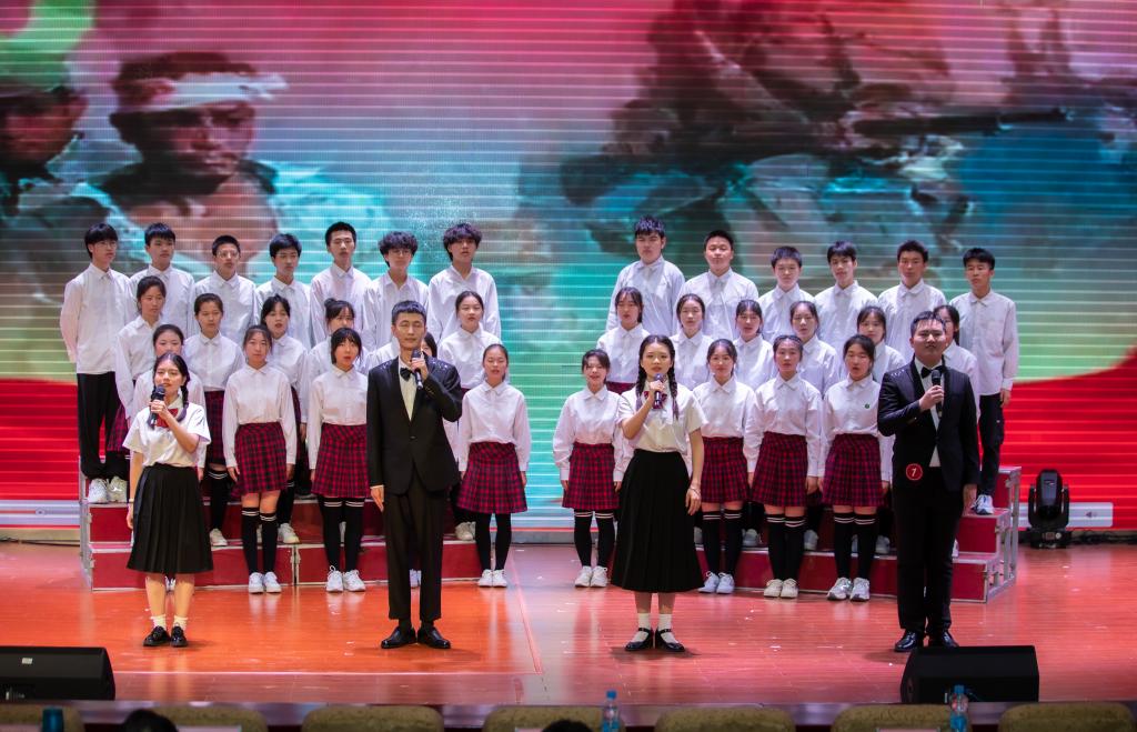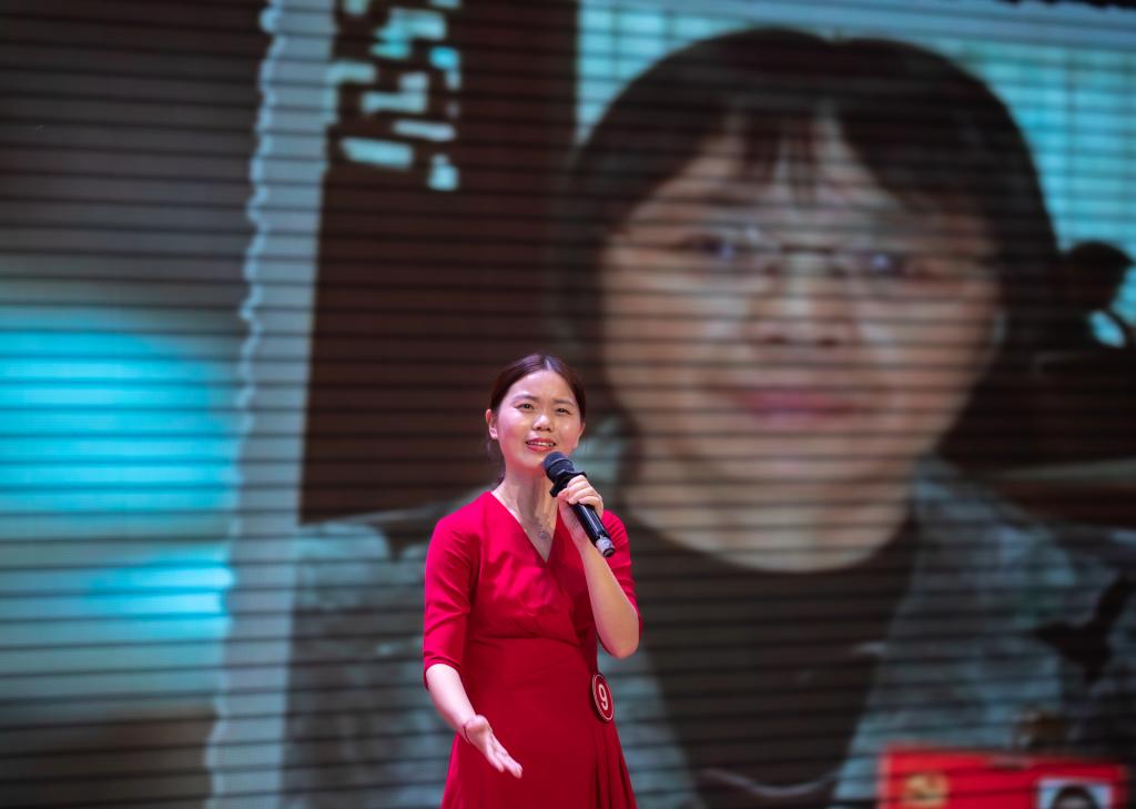 在教师组的展示中,张婧莉老师的《红梅赞》,讲述了感动中国人物张桂梅老师植根大山,打造女子高中,用一生的时光将孩子们送出大山的故事,深深地打动了每一位观众;彭波老师的《纪念碑下的沉思》为我们展示了一幅幅悲壮的战斗画面,提醒我们铭记历史、勿忘国耻;蔡岚玢老师的《鲜艳党旗》,告诉我们党旗上写着“为人民服务”,写着“吃苦在前,享受在后”,写着“不忘初心”,这更坚定了我们要坚持党的领导的决心。