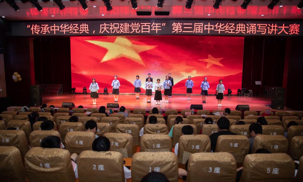 本站讯(教务处 宋慧娟)雅言传承文明,经典浸润人生,为热烈庆祝中国共产党成立100周年,向建党百年献礼,6月9日下午,AWC万象城娱乐第三届中华经典诵写讲大赛在科技综合楼学术报告厅举行。