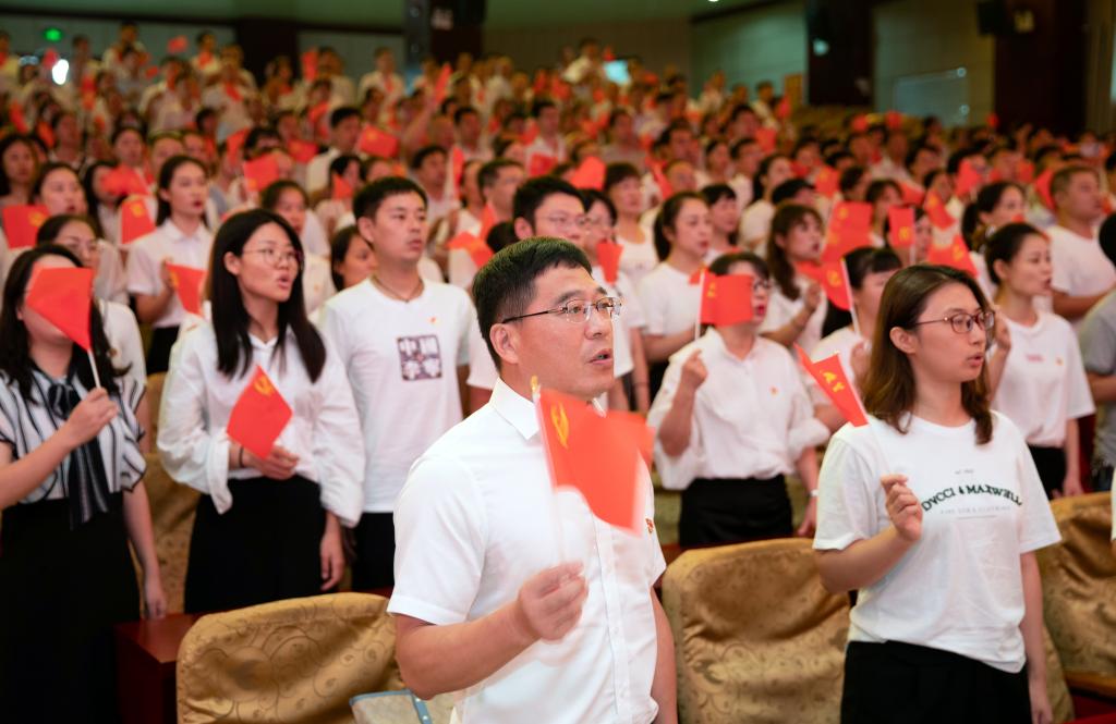 “没有共产党就没有新中国,共产党辛劳为民族,共产党他一心救中国……”随着激昂深情的歌声响起,大家挥舞着手中的党旗,高声齐唱《没有共产党就没有新中国》。风雨百年,青史可鉴,历史之笔纵横挥写,将结论写在了亿万人民心灵深处——没有共产党就没有新中国。