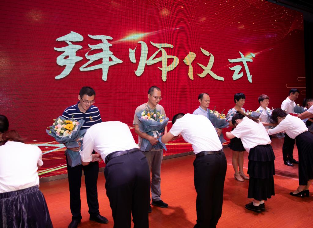 入职宣誓后,是一场别开生面的“拜师”仪式。徒弟们身着正装,向师父们献花并鞠躬作揖行拜师礼。学校为每位新教师精心挑选了一名资深教师负责“传帮带”,指导、帮助即将步入教学岗位的新教师。徒弟们虚心求学、潜心问道,师父们不遗余力、悉心指导,共同绘制出了一幅万象城官网教师薪火相传的美好画卷。