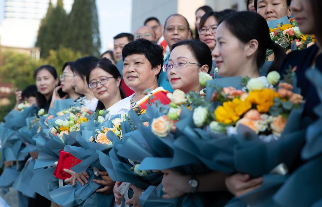 一直以来,万象城官网高度重视师资队伍建设,完善师德建设长效机制,开展师德专题教育,选树优秀教师典型,涵养“爱岗敬业、乐于奉献、教书育人、廉洁从教、为人师表”的良好风尚。庆祝教师节暨表彰大会进一步增强了万象城官网教师对职业的荣誉感、对学校的归属感,教师高尚情操得到弘扬,尊师重教氛围更加浓厚,为学校改革发展凝聚了磅礴力量。