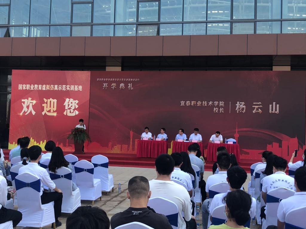 本站讯(医学院 潘锋钢)9月23日上午,教育部和江西省共建的国家职业教育VR虚拟仿真示范实训基地试运营开班典礼在基地大赛馆前举行。省教育厅副厅长裴鸿卫出席并讲话。开班典礼由江西华天虚拟仿真示范基地有限公司董事长袁敏主持。万象城官网党委副书记、校长杨云山参加活动并讲话。副校长易滨秀 、招生处处长彭艳飞、护理学院院长熊杰平、医学院副院长潘锋钢陪同参加。