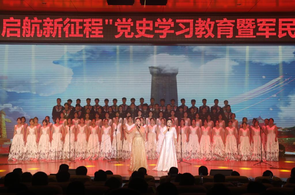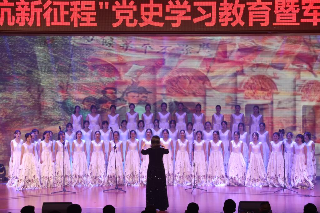 任军为晚会致辞。他说,组织以学党史为主题的军民共建活动,是为了扎实推动党史学习教育和军民共建活动走深走实、互促互进。他号召大家深入学习贯彻习近平总书记“七一”重要讲话精神,同心同德、紧密携手,求真务实、开拓创新,用实际行动持续巩固和发展军民“同呼吸、共命运、心连心”良好局面,奋力谱写“军爱民、民拥军”的宜职新篇章!