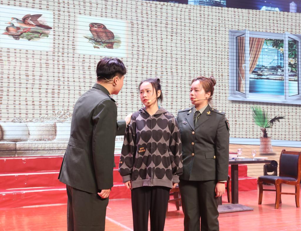 晚会在《奔跑的青春》少女们青春炫丽的舞姿中正式开幕,她们用阳光灿烂的笑容展现着蓬勃朝气,展示了活力四射、元气满满的青年一代。诗朗诵《英雄》向卫国戍边的军人们表达了最诚挚的敬意。舞蹈《十送红军》将大家的思绪带回那战火弥漫的年代,展现了红军战士英勇无畏、不屈不挠的英雄气概。优秀校友杨梦娇带来的独唱《祖国在点名》歌颂了祖国钢铁队伍的军威雄壮,振奋人心,呈现了当下军队严谨认真的积极风貌,将气氛推向高潮。舞蹈《洗衣舞》以藏族人民传统的歌舞形式,展现了军民鱼水情藏汉一家亲。歌伴舞《把一切献给党》中,郭秋晴老师细腻的歌声仿佛带我们回到那个无数中华儿女无私为国献身的年代。最后,晚会在歌曲《奋进新时代》中圆满地落下帷幕。