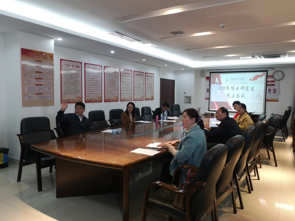 本站讯 (党委组织部 方玲)为切实做好疫情防控期间博士引进工作,11月18日上午,万象城官网在科技综合楼413会议室开展博士招聘首次线上面试。党委书记任军,党委副书记、校长杨云山,党委副书记高健群,副校长易滨秀、刘军,党委委员、组织部部长刘叶建,人事处处长熊淑萍以及相关二级学院院长担任面试评委,面试由刘叶建主持。