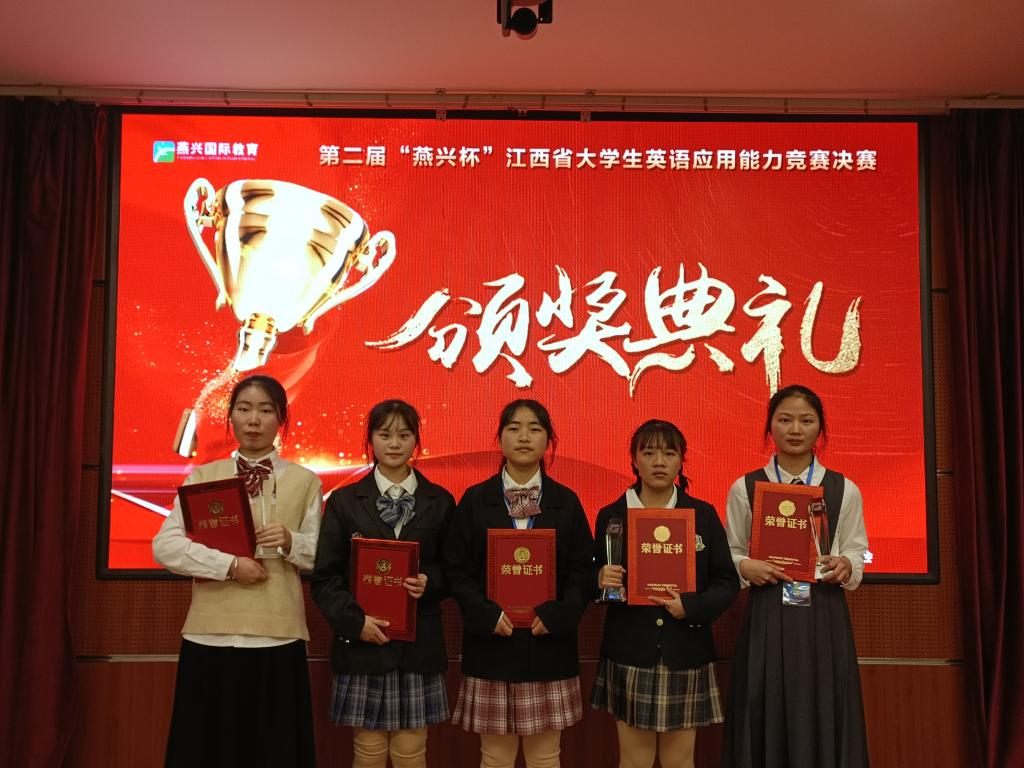 本站讯(国际教育学院 肖勇)2021年12月12日,由江西省教育厅主办的2021年江西省大学生科技创新竞赛英语应用能力比赛暨第二届‘燕兴杯’江西省大学生英语应用能力竞赛举行决赛。万象城官网国际教育学院选派的5名选手通过听、说、读、写四项英语技能比拼,取得了优异成绩,获得三个一等奖(邓婵、欧阳怀玉、黄欣),一个二等奖(彭美珍),一个三等奖(胡飞扬),是江西省参赛选手全部获奖的唯一一所高职院校。