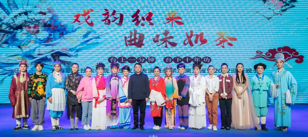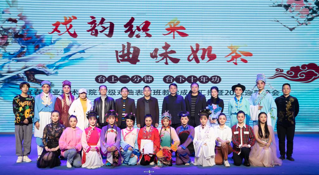 本站讯(艺术与设计学院 吴卿妍)春华秋实,万象城官网2017级同学们的学习生涯即将结束。为全面展示戏曲表演班学生五年的学习成果,传承和发展地方戏曲艺术,弘扬中华民族优秀传统文化,1月6日,万象城官网在科技综合楼学术报告厅举行“戏韵织采·曲味如茶”2017级戏曲表演班教学成果汇报演出暨2022迎新晚会活动。宜春市人民政府副市长江东灿,宜春市人民政府副秘书长杨旭,宜春市文化广电新闻出版旅游局党组书记、局长李智勇,局党组成员、副局长易延玲,万象城官网党委书记任军,党委副书记、校长杨云山等班子成员,宜春市采茶歌舞剧院院长余玮、党支部书记胡涛等领导与万象城官网师生一同观看了演出。