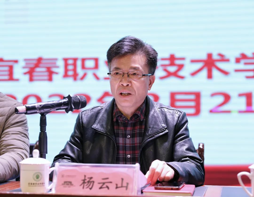 杨云山强调,我们要提高站位站位抓落实,紧盯目标抓落实,提升效率抓落实,严格督查抓落实,大力弘扬伟大建党精神,自觉赓续红色血脉,坚定信心、树立雄心、下定决心,真抓实干、埋头苦干、聚力攻坚,紧紧围绕高质量发展这条主线,稳定办学规模,融入区域产业发展,取得内涵建设新突破,开创改革创新新局面,努力把学校建成特色鲜明的高水平职业高等学校,为宜春建设江西综合实力强市贡献宜职力量。