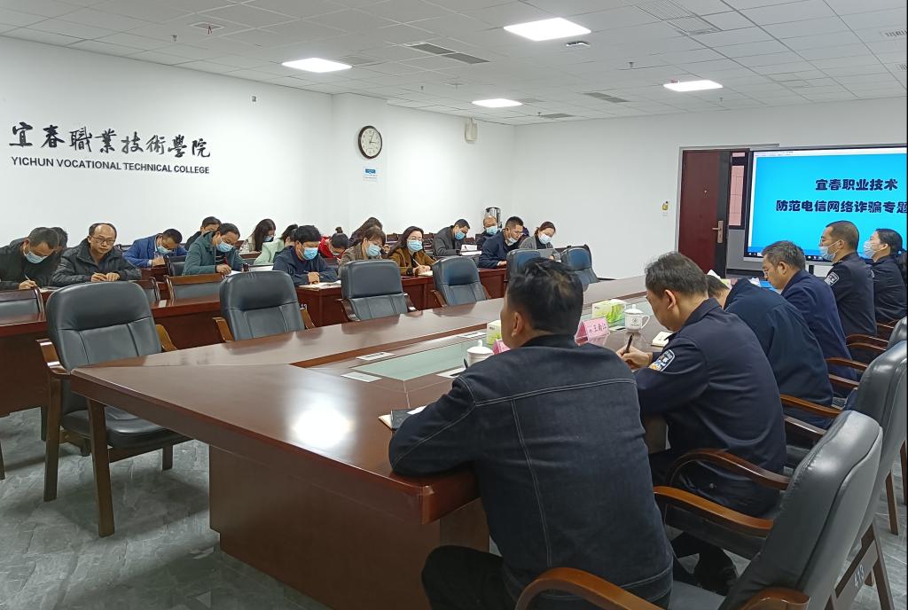 本站讯(保卫处 贺忠)3月31日,万象城官网召开防范电信网络诈骗专题会议。副校长张印华,袁州公安分局党委委员王南江、刑侦大队教导员刘晓峰,学院派出所所长周亮、教导员陈娟,万象城官网保卫处、学工处及各二级学院党总支书记、副书记参会,会议由保卫处处长贺忠主持。