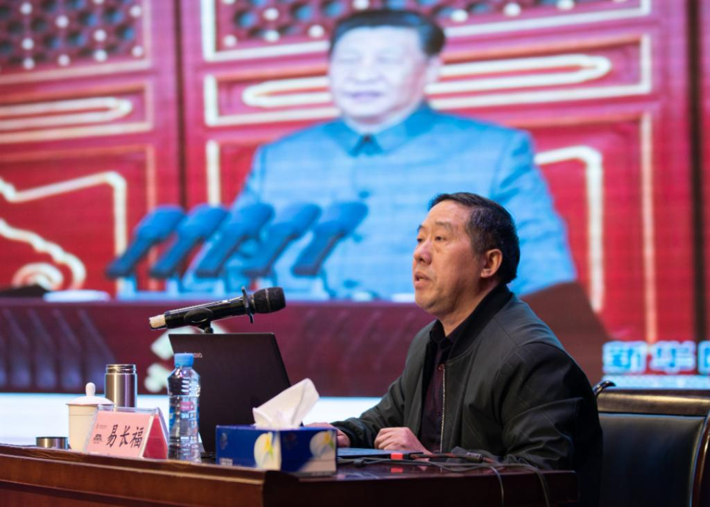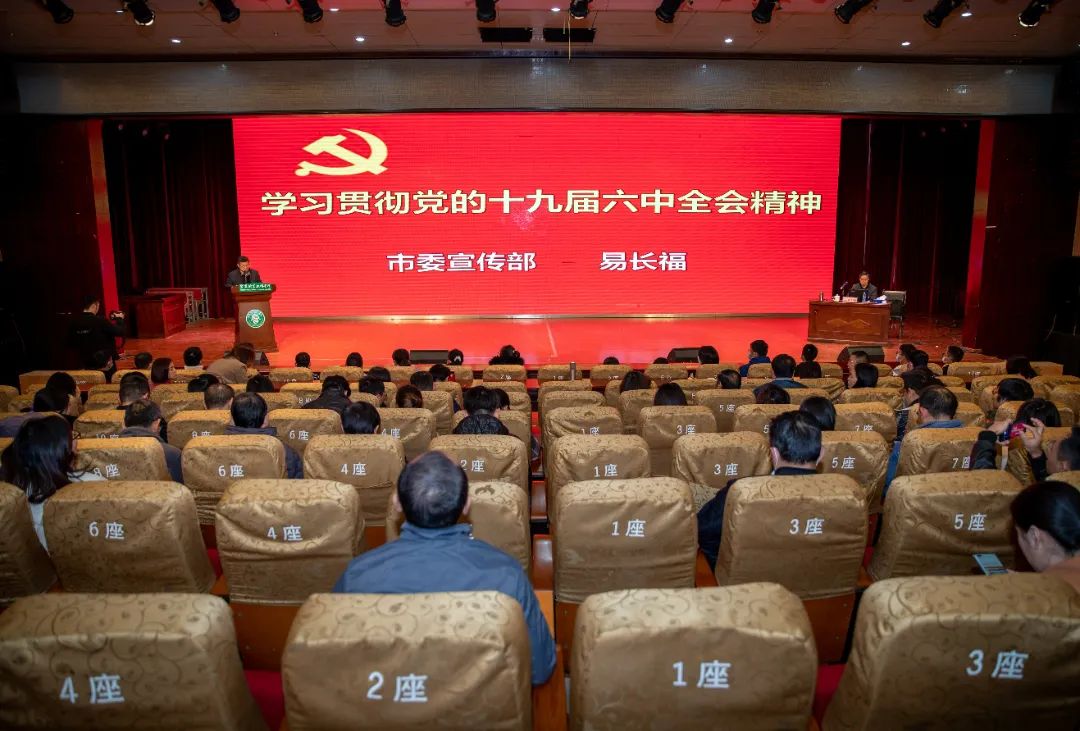 本站讯(党委宣传部 易婧)12月7日下午,市委宣讲团成员、市委宣传部二级调研员易长福来到万象城官网,在科技综合楼学术报告厅为师生们宣讲党的十九届六中全会精神。在家校领导、中层干部、党员教师与学生代表共计四百余人一同聆听了宣讲。宣讲会由校党委副书记高健群主持。