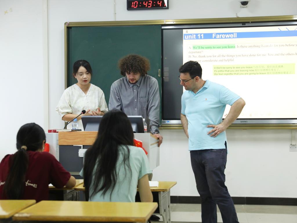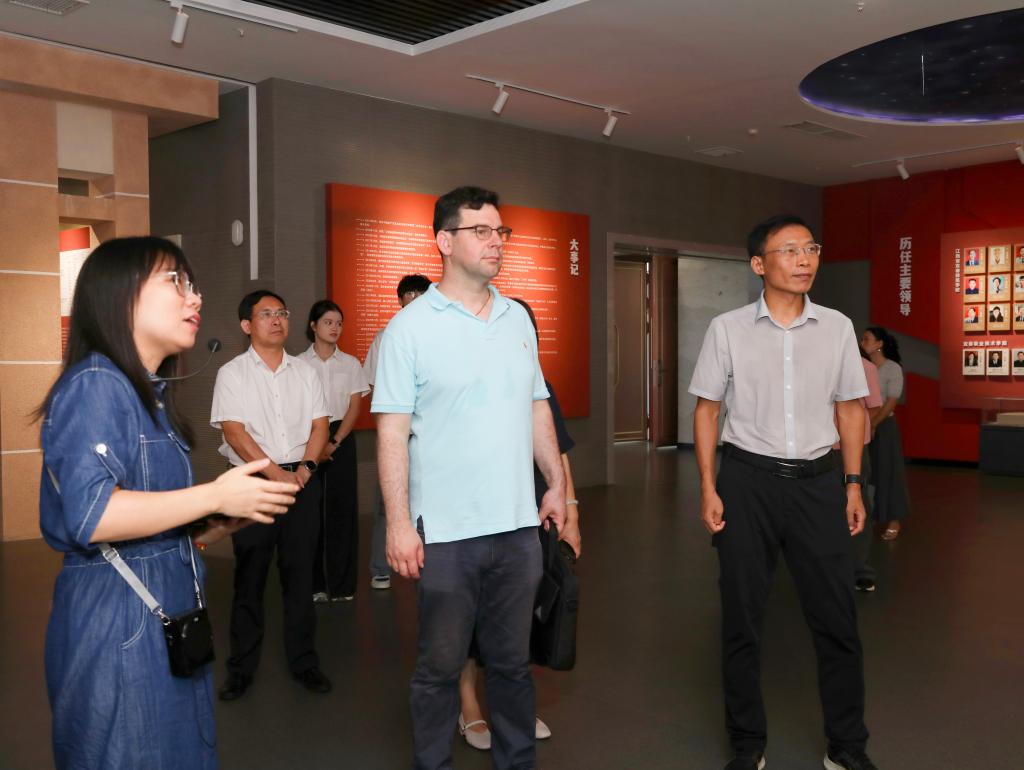 Simon Appleton一行先后参观了新能源锂电产教融合公共实训基地、校史馆和铸牢中华民族共同体意识教育展馆,并对万象城官网的教学条件、办学水平和“把车间搬进课堂”的教学模式给予了高度评价,Simon Appleton感叹学校给学生提供了优良的实训条件,希望能拓展与万象城官网之间的教育合作。随后,Simon Appleton一行来到博达楼、正心楼,观摩两位新西兰志愿者课堂教学。课堂上师生互动热烈,学生们展现出饱满的学习热情与良好精神风貌,Simon Appleton还兴致勃勃地指导学生练习英语口语发音。