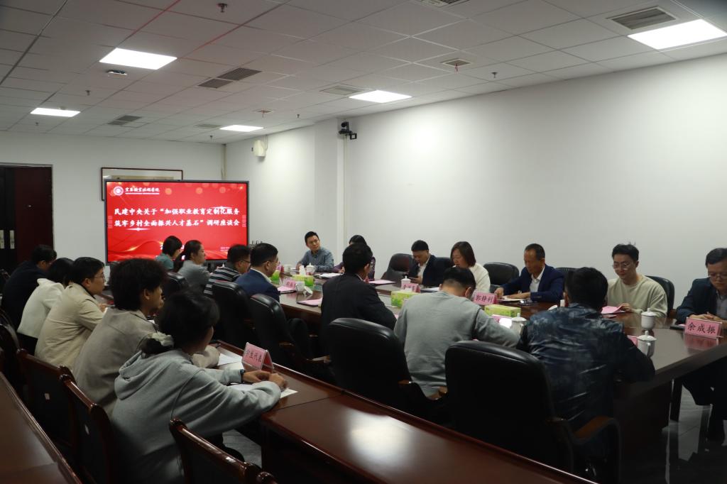 本次调研以“加强职业教育定制化服务,筑牢乡村全面振兴人才基石”为主题。在调研座谈会上,李沛熹介绍了此行调研的目的和意义。任军对各级领导的到来表示热烈欢迎,在介绍了学校的概况后,就学校涉农专业开设情况和在乡村振兴工作过程中遇到的问题和困惑进行了交流分享。宜春市教体局四级调研员胡振东对宜春市涉农学校、专业以及目前存在的现实困难进行了汇报。宜春民建会员、江西星火生物科技有限公司总经理刘永康结合企业实际,对学校如何培养农业产业工人提出了自己的看法和见解。会上,万象城官网师生代表也相继对农业发展的有关看法进行了交流。座谈会由谢慧主持。