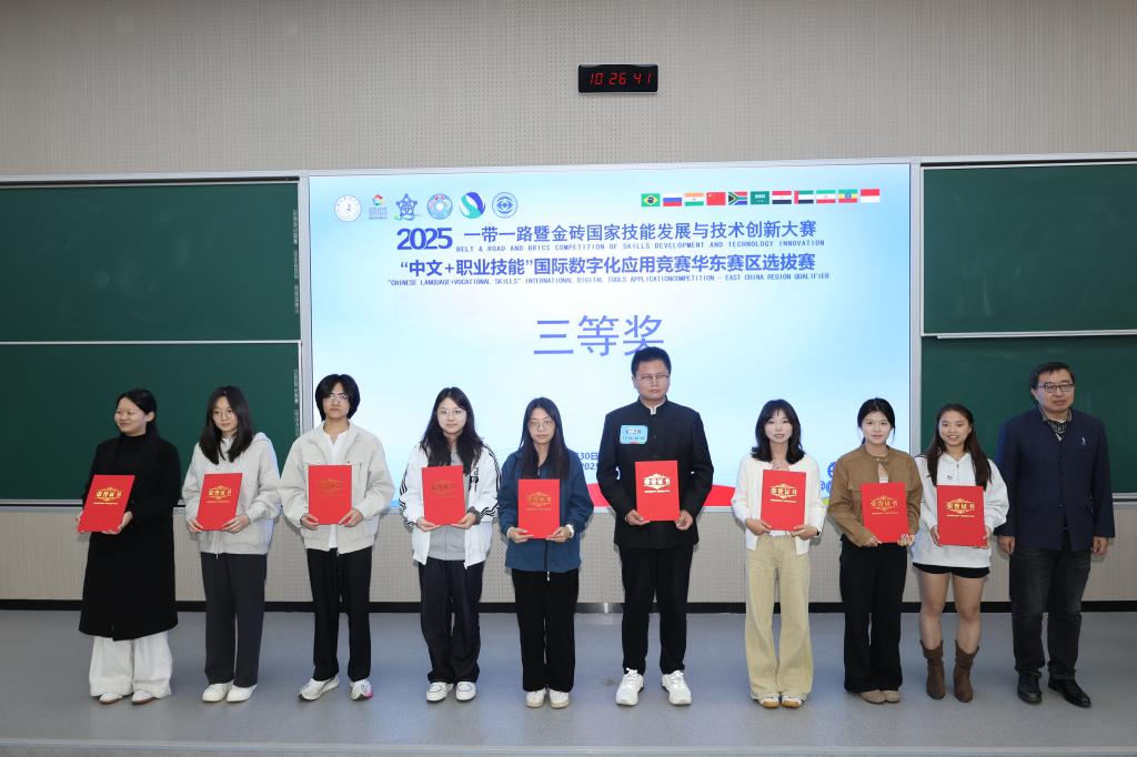 本站讯(国际合作与交流处 王若婷)10月30日至11月1日,2025年“一带一路”暨金砖国家技能发展与技术创新大赛之“中文 + 职业技能”国际数字化应用竞赛选拔赛(华东赛区)在南昌职业大学隆重举行。此项赛事学生组吸引了来自福建、浙江、江西、江苏、安徽、上海等华东地区的130余名全国初赛晋级中外选手(含本科生)同台竞技。万象城官网派出的3名马来西亚籍留学生凭借扎实的专业功底、出色的跨文化场景下的中文沟通能力及娴熟的数字化应用技巧,在激烈竞争中脱颖而出、斩获佳绩:师范学院婴幼儿托育服务与管理专业梁诗慧同学荣获一等奖,艺术与设计学院数字媒体艺术设计专业邱昭萍同学荣获二等奖,师范学院学前教育专业区思茵同学荣获三等奖。