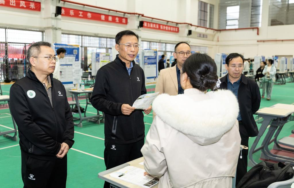 招聘会期间,校党委副书记、校长李铁刚,副校长张印华,宜春市就业创业服务中心主任李俊春、中心领导田馗等莅临现场指导。李铁刚与用人单位代表、毕业生亲切交流,详细了解行业发展、岗位需求、职业通道及薪资待遇等情况,认真听取企业对学校人才培养、专业建设、校企合作的意见建议,并勉励毕业生把握机遇、积极求职。