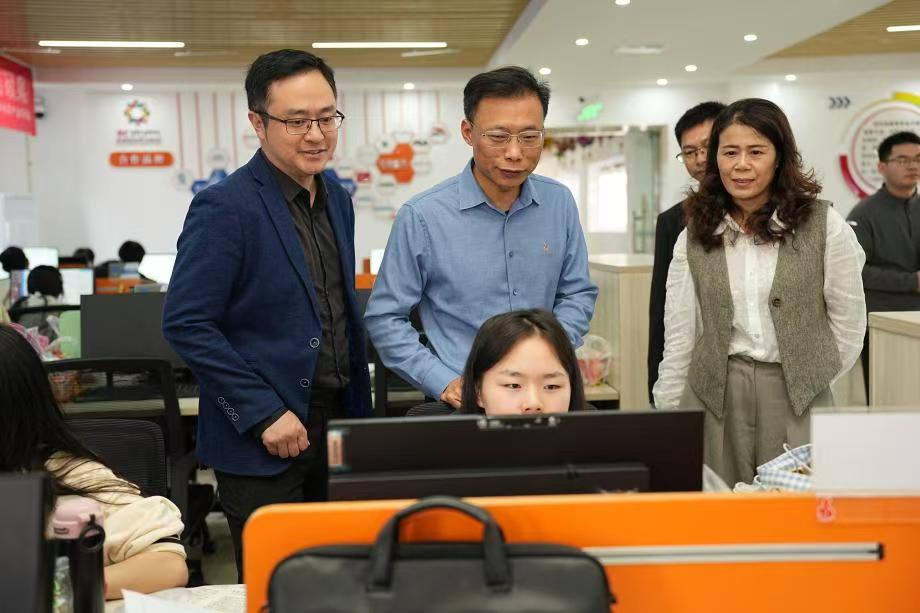 本站讯(经济管理学院 杨琨)11月7日,校党委副书记、校长李铁刚深入几何体电商产业学院,专题调研“以产业学院为载体,破局数字经济人才培养”校内产教融合改革成效。在经济管理学院党总支书记邓晶、院长邓如星及产业学院院长文玉泽陪同下,李铁刚先后走进跨境电商、短视频剪辑、直播电商、电商客服四大实训区,与290名师生面对面交流,现场观摩实战流程,对“课堂即车间、作业即产品”的产教融合模式给予高度评价。