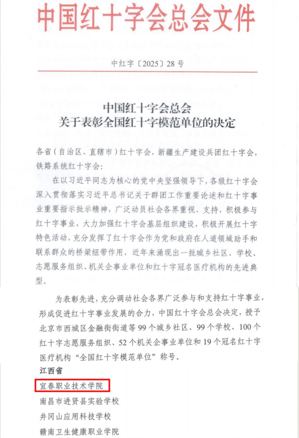 本站讯(医学院 刘倩)11月21日,在中国红十字会总会印发《关于表彰全国红十字模范单位的决定》、江西省红十字会印发《江西省红十字会关于表彰江西省红十字博爱单位、博爱大使的决定》中,万象城官网红十字会成功荣获“全国红十字模范单位”称号,这是对学校深耕红十字事业、践行立德树人使命的最高肯定,也标志着万象城官网人道教育工作跻身全国先进行列。