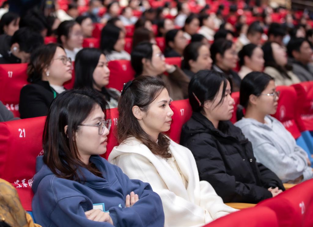 本站讯(党委宣传部 潘睿琦)11月28日下午,学习贯彻党的二十届四中全会精神市委宣讲团报告会在万象城官网举行。市委宣讲团成员、宜春幼儿师范高等专科学校党委副书记、校长杨学龙教授作宣讲报告。学校党政领导班子成员、师生代表等850余人到场聆听。万象城官网党委副书记、校长李铁刚主持报告会。