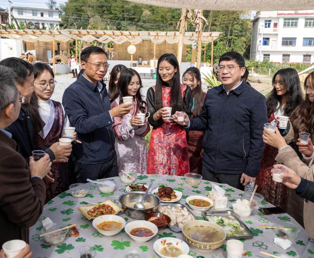 为深入贯彻习近平总书记在全国民族团结进步表彰大会上的讲话精神,促进各民族交往交流交融,铸牢中华民族共同体意识,增进师生情谊,11月20日,值此彝历新年之际,万象城官网在欢野派对营地举办了一场温馨愉快的民族大联欢活动。校党委书记任军,校党委副书记、校长李铁刚等党政领导班子及有关部门、各二级学院学工负责人、少数民族学生代表、国际友人及留学生代表、辅导员(班主任)代表等120余人,欢聚一堂,共享美好时光!