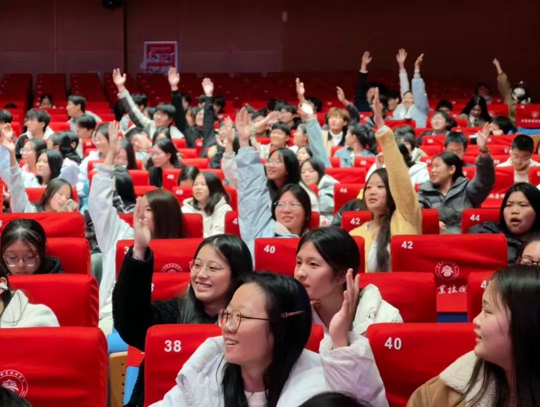 汉代海昏侯国遗址国家考古遗址公园金牌讲解员张静芳以“时空导游”的身份,展开精彩讲座。从震惊世人的遗址发现,到考古成果的丰硕灿烂;从海昏侯刘贺跌宕起伏的传奇人生,到一件件穿越时光的国之瑰宝,她以生动的叙事和深厚的学养,清晰勾勒出海昏侯国的历史脉络,引领观众步入一场跨越千年的文化探索之旅。现场掌声阵阵,反响热烈。在随后的互动问答环节中,师生们踊跃举手、积极应答,将全场气氛推向高潮。