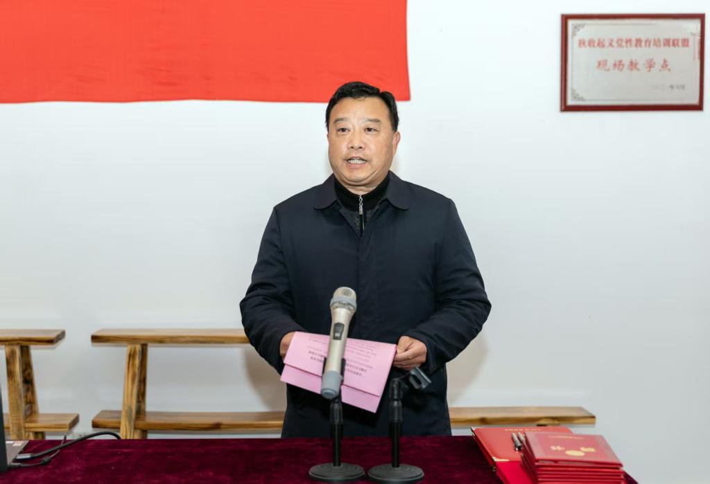 当日上午,签约仪式在纪念馆党课教室举行。仪式由赖济红主持。致辞中,邓永忠表示,铜鼓是一片承载着秋收起义光辉历史的红色热土,纪念馆是这段历史的坚定守护者与忠实传承者。他认为,此次校馆合作是一次“历史”与“未来”的对话、“薪火”与“青春”的接力,旨在携手构筑一座实实在在的“同心桥”。他希望校馆双方以此次签约为新起点,将基地建设成为馆校融合、协同育人的示范平台,让红色基因在新时代的传承中生生不息、血脉永续。