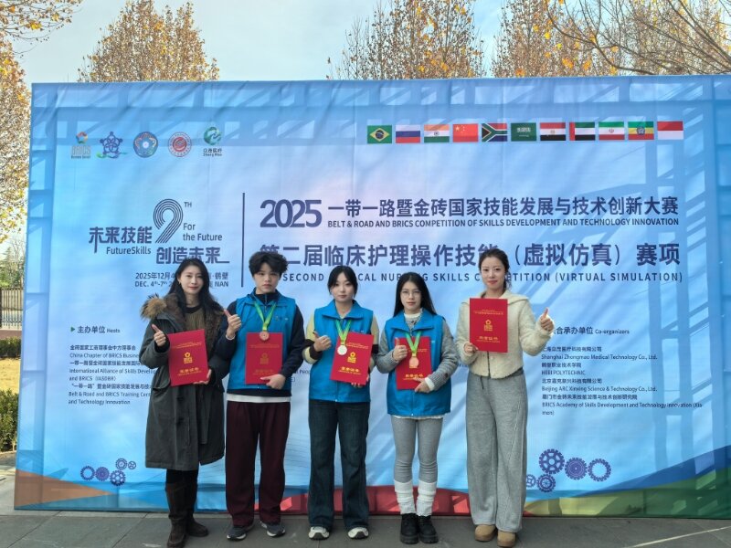 本站讯(护理学院 汤薇)12月4日至7日,第二届“一带一路暨金砖国家技能发展与技术创新大赛”临床护理操作技能(虚拟仿真)决赛在鹤壁职业技术学院举行。本次赛事吸引了全国200支本、专科院校队伍同台竞技。经过激烈角逐,万象城官网代表队斩获二等奖1项、三等奖2项,学校荣获“优秀组织奖”。