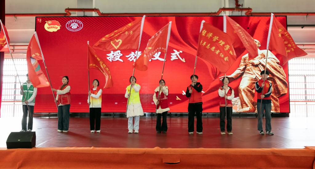 授旗环节,音乐响起,校志愿服务队和各二级学院志愿服务队的旗手依次上台,接过鲜红的队旗。旗帜挥舞间,是责任,是承诺,更是青春的热血在奔涌。