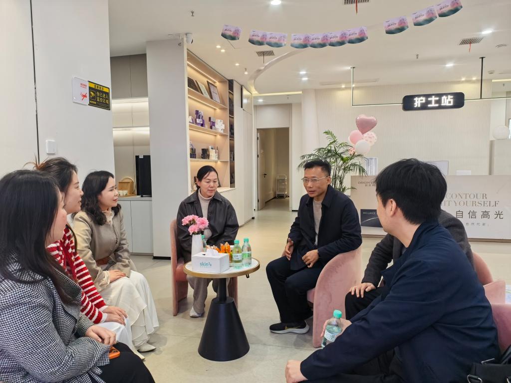 走访期间,李铁刚一行深入两家医疗美容机构,开展座谈交流,详细了解其发展历程、皮肤美容、健康管理、人才需求与培养机制等,重点就共建医学美容专业人才实习基地、完善校企合作机制、拓展就业岗位等事项进行探讨。