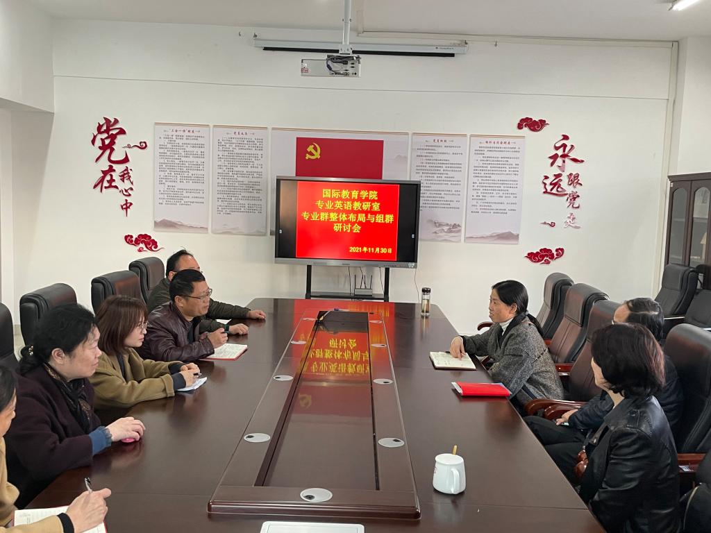 本站讯(国际教育学院 李强)11月30日下午2点半,国际教育学院专业英语教研室组织专职教师在科技综合楼401集中观看学校专业群整体布局与专业组群建议视频。专职教师结合万象城官网发展历史和小学英语教育专业的实际详细讨论了外语、师范专业群的发展特点和组群逻辑,并提出了各自的建议。本次专业群讨论会由韩菁院长主持。