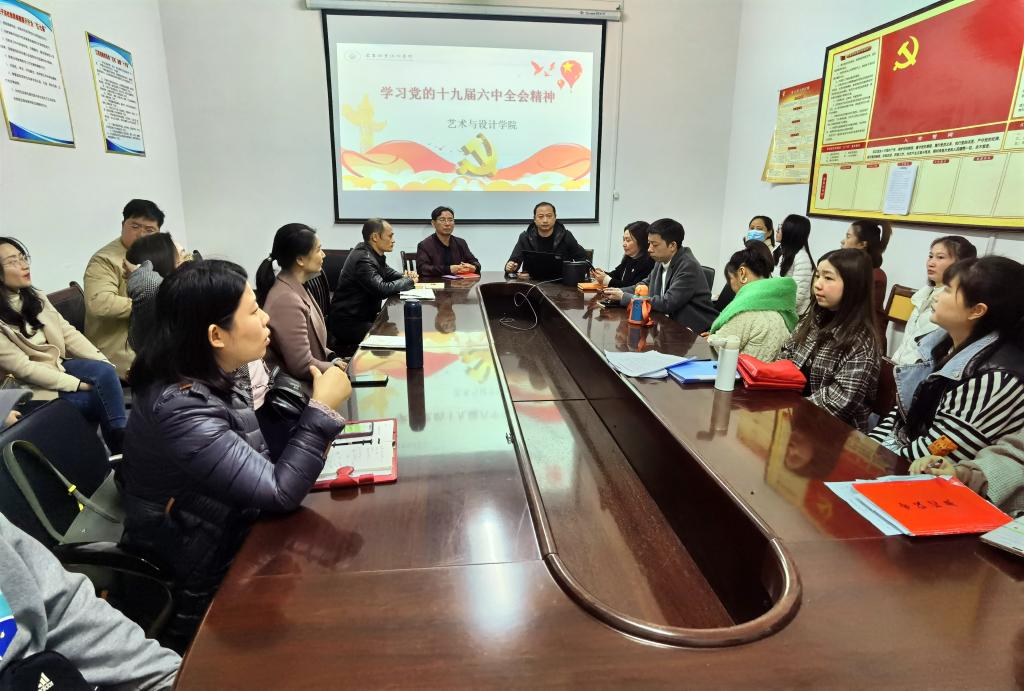 本站讯(艺术与设计学院 钟敏)11月30日下午,艺术与设计学院组织召开政治理论学习会议,传达学习习近平总书记在十九届六中全会和中央全面深化改革委员会第二十二次会议上的重要讲话精神,并围绕学习贯彻党的十九届六中全会精神和江西省第十五次党代会精神,进行交流研讨。艺术与设计学院党总支书记罗平主持会议,全院教职工参加会议。