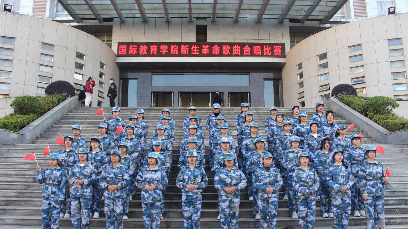 本站讯(国际教育学院 朱媛 学生记者 刘子彤)为了不断提高中国共产党在大学生中的凝聚力和影响力,国际教育学院党总支在2021级新生中大力开展形式多样的大学生党的基本知识教育,并于11月30日下午组织2021级全体新生在科技综合楼阶梯处举行了革命歌曲合唱比赛。
