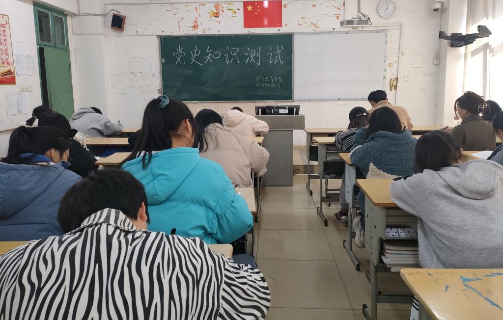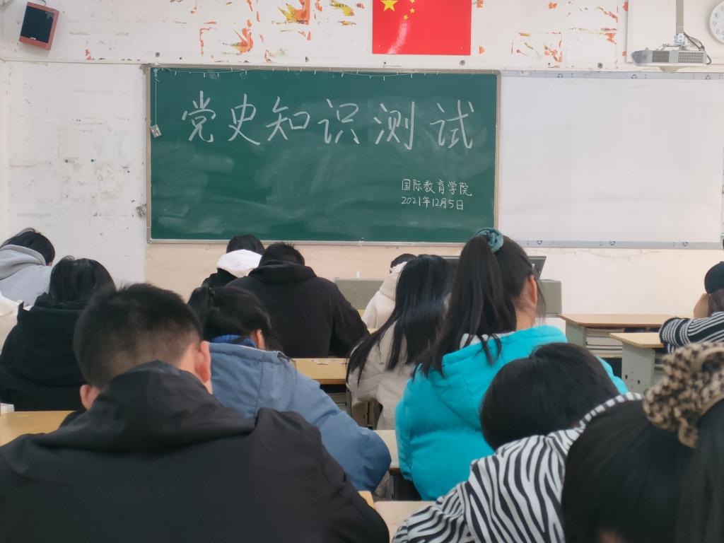 本站讯(国际教育学院 杨琨 学生记者 潘晓)为深入学习贯彻习近平新时代中国特色社会主义思想,引导广大学生听党话、感党恩、跟党走,扎实推进党史学习教育,根据国际教育学院在大学生中开展党的基本知识教育活动工作安排,国际教育学院于12月5日中午12:30在第一教学楼X405教室开展了“以史为鉴,开创未来”党史知识竞赛。