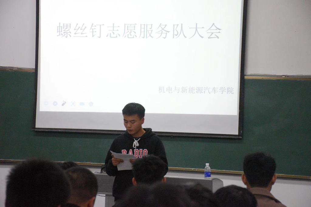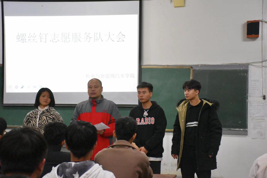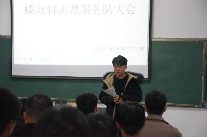 本站讯(机电与新能源汽车学院 周勤 学生记者 陈悦)为增强学生的纪律观念,确保日常考勤,营造良好的学风,推进和谐校园建设,我院组建螺丝钉志愿者服务队。12月7日晚,螺丝钉志愿者服务队,第一次大会于万象城官网二教学楼隆重举行。