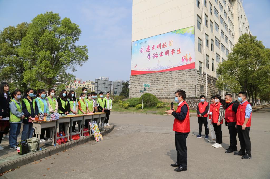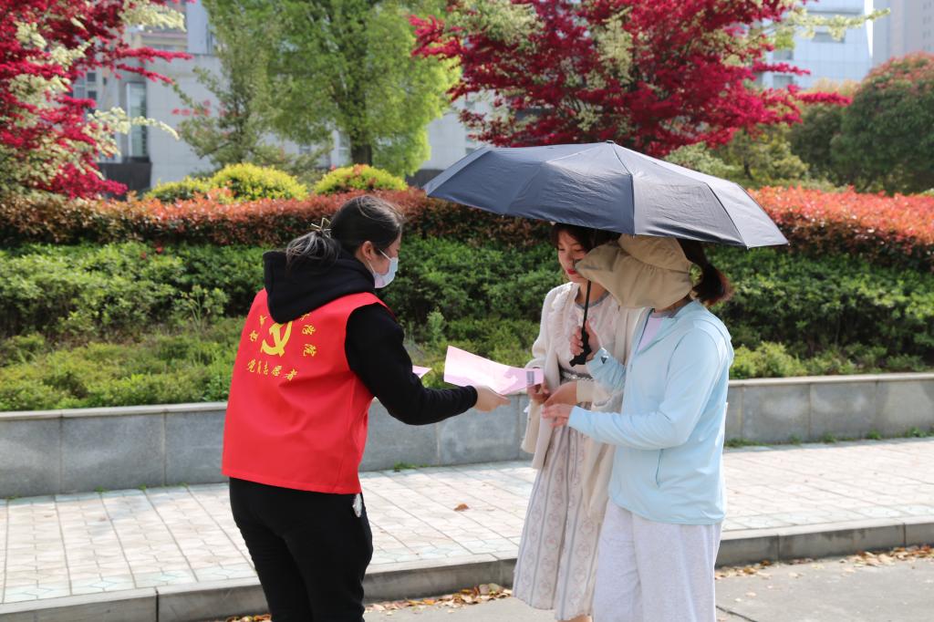 本站讯(机关第一党支部 刘杰)3月19日下午,为积极响应国家碳达峰、碳中和发展战略决策,加强同学们垃圾分类意识,营造良好的校园环境,机关第一党支部的全体党员与师范学院小教21302班的同学们一起在老校区开展垃圾分类宣传活动。校党委副书记、校长杨云山同志以普通党员身份参加了此次活动。