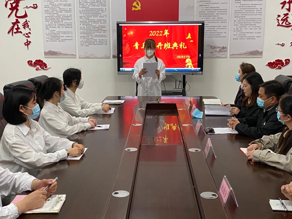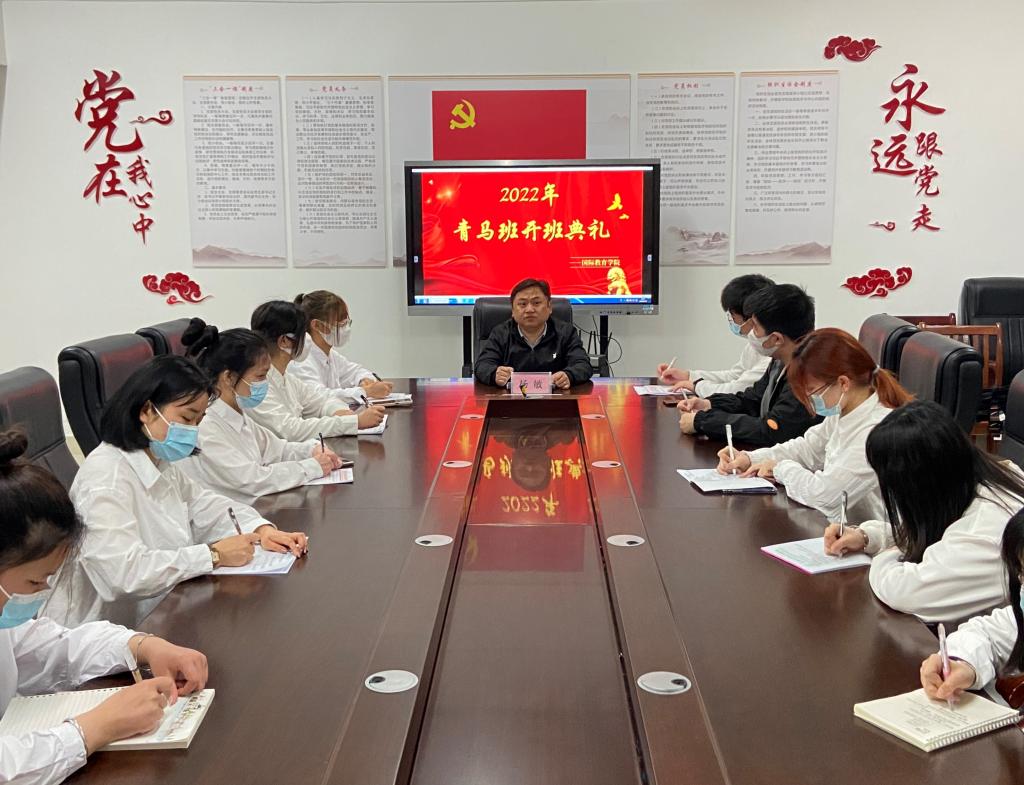 本站讯(国际教育学院 朱媛)为深入学习贯彻习近平总书记关于青年工作的重要思想,培养新一批政治坚定、作风优良的青年马克思主义者,国际教育学院于3月20日晚在科技综合楼401会议室举行2022年“青马工程”大学生骨干第一阶段集中培训班开班典礼。我院党总支书记刘海云、副书记杨敏、学工科科长杜欣宇、辅导员杨琨、辅导员金岩等老师出席本次典礼,共计24名大学生骨干和优秀青年学生代表参与本次培训,此次典礼由院团总支书记朱媛主持。