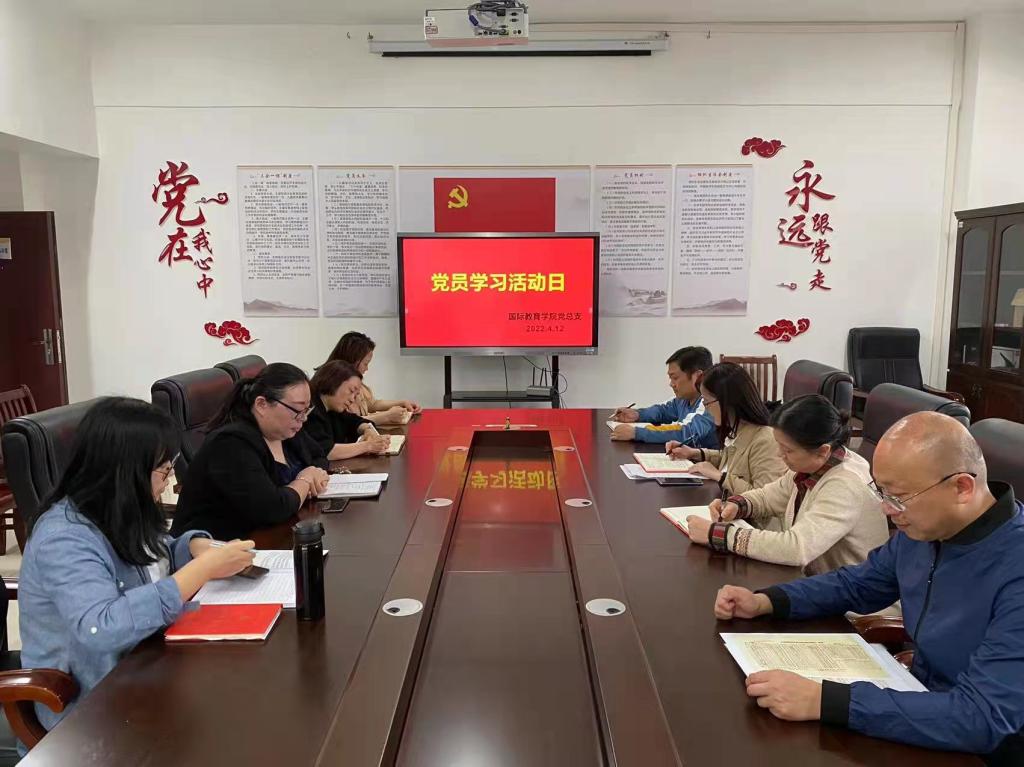 本站讯(国际教育学院 周沫利)为深入学习习近平总书记系列讲话精神、贯彻易炼红同志在省教育工作领导小组2022年第一次全体会议上的重要讲话精神,继续推进“三拼三促”工作,发扬党员先锋模范作用,国际教育学院党总支于4月12日下午在科技综合楼401党员活动室开展党员学习活动日活动并召开党员大会,活动由党总支书记刘海云主持,全体党员参加。