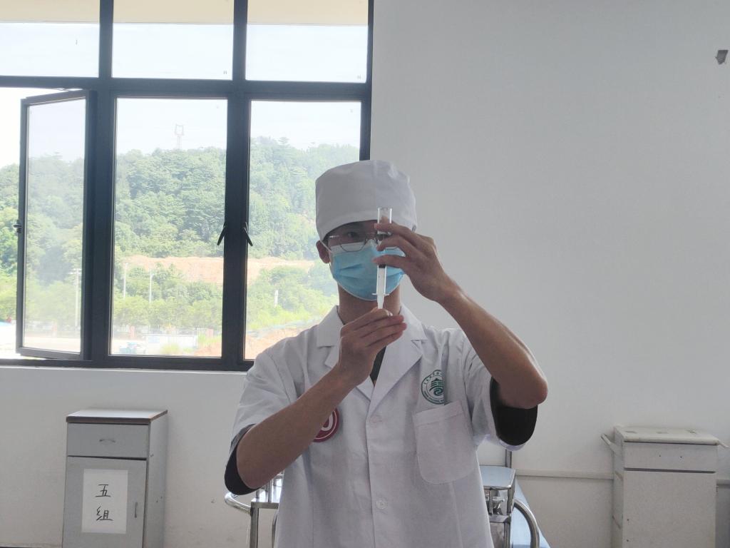 本站讯(护理学院 刘明健 欧阳西蕊)为检阅同学们的护理知识运用能力,提高实训操作技能,展现护生风采,5月17日下午,护理学院在德济楼A306开展“药液抽吸”技能大赛。本次比赛邀请邓兰萍、吴妮娟、刘磊、曾秀荣、刘世兰、李悠梦等六位专业教师担任评委,共34名选手参加比赛。