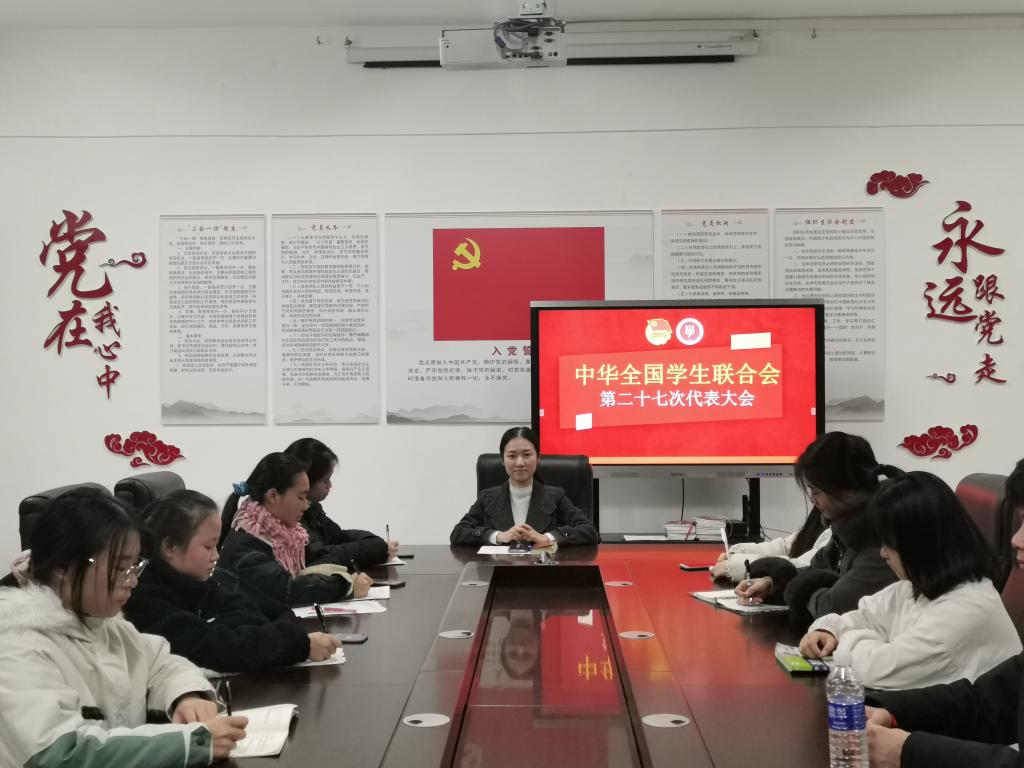 本站讯(国际教育学院 周沫利 学生记者 胡飞扬)为了提高我院学生干部政治素养,同时根据2020年校青年马克思主义者培养工程大学生骨干第一阶段集中培训班安排表要求,国际教育学院于12月1日晚上8点在科技综合楼401国际教育学院党员活动室开展学习“中华全国学生联合会第二十七次代表大会”(下简称:全国学联二十大)精神活动。学习活动由国际教育学院团总支书记周沫利主持,15名院学生会骨干成员参加。