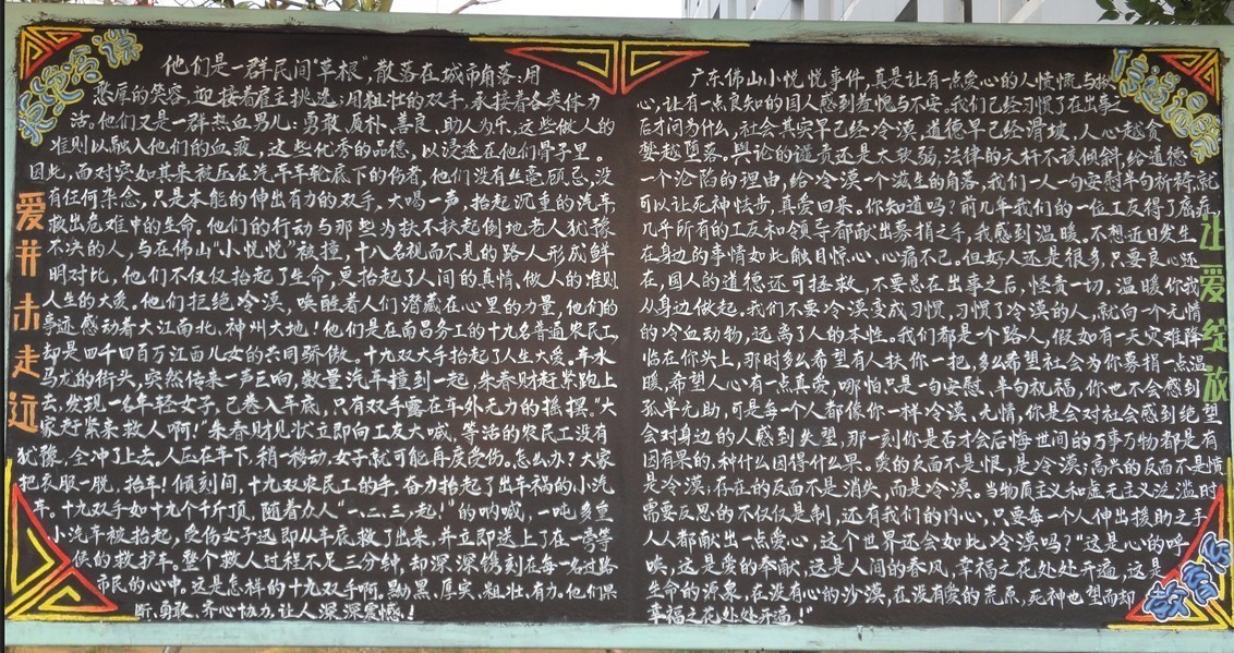 本站讯(团委 陈雪莲学生记者 陈祖峰)为呼吁人们拒绝冷漠,传递温暖,激发青年学生做个有爱心的人,11月22日下午,我院团委开展了以“拒绝冷漠,传递温暖”为主题的宣传板报评比活动。